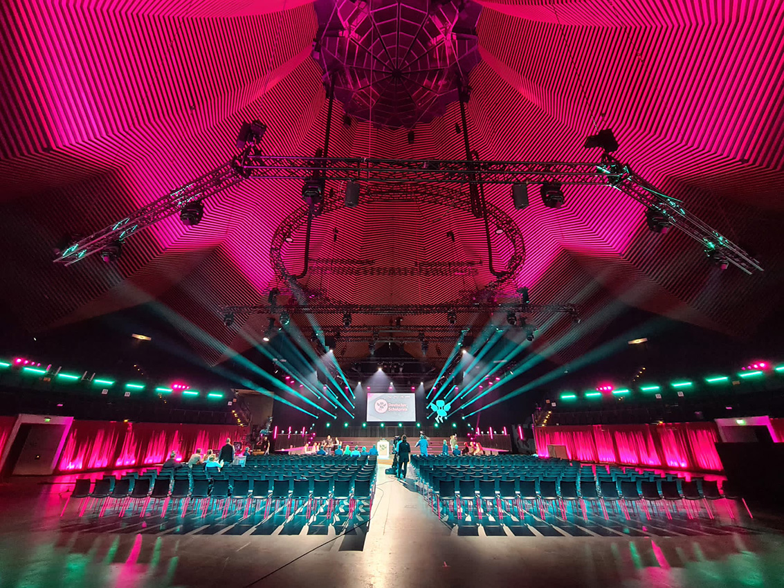 Die technische Ausstattung des Tempodroms für die Verleihung des Deutschen Schulpreises war auf höchstem Niveau. Dank modernster Licht- und Tontechnik wurde eine einzigartige Atmosphäre geschaffen, die die Gäste begeisterte. Die Bühne war perfekt in Szene gesetzt und sorgte für einen professionellen Rahmen für die Preisverleihung.